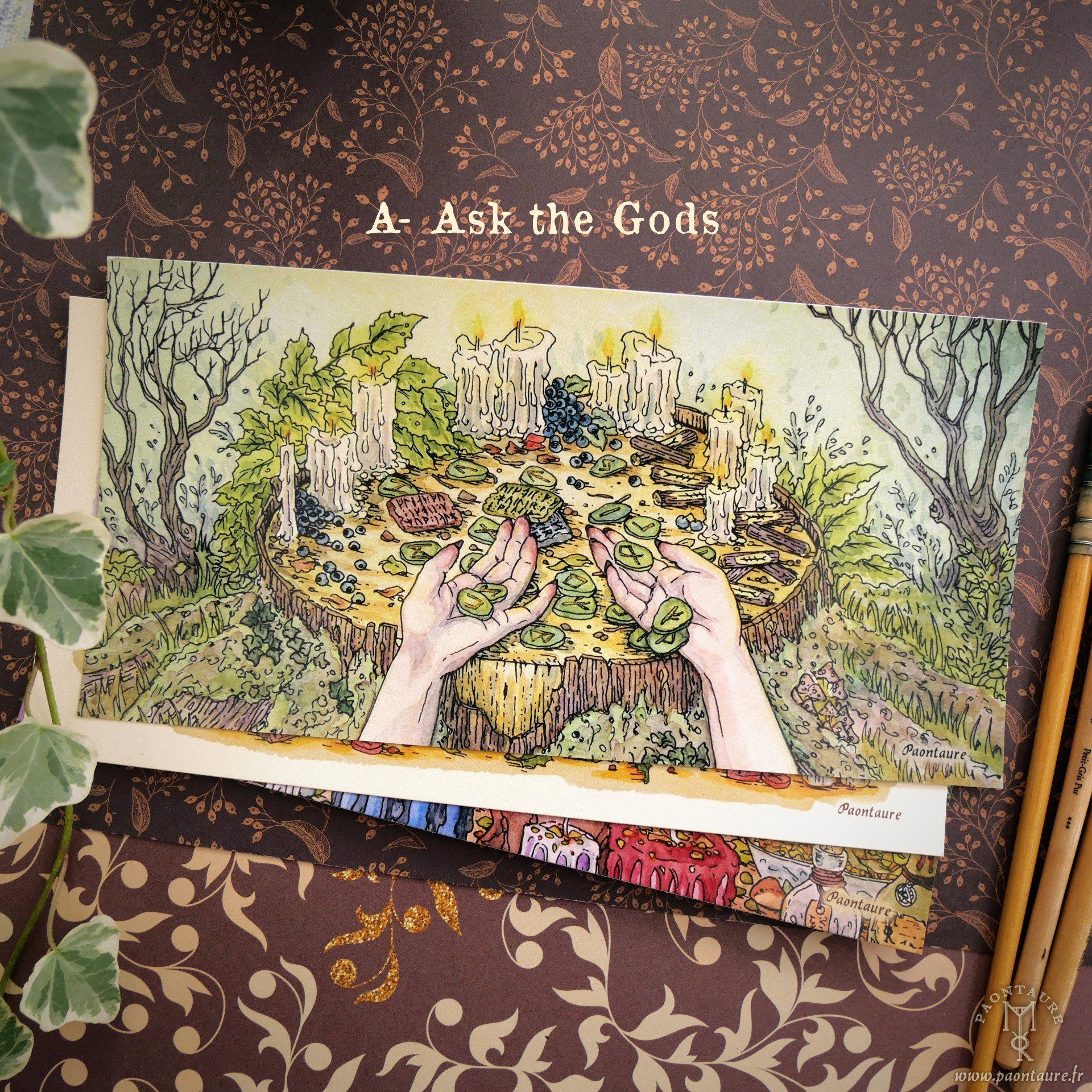 En lot ou à l'unité : 3 cartes postales longues issues de peintures personnelles, dans une ambiance mystique.