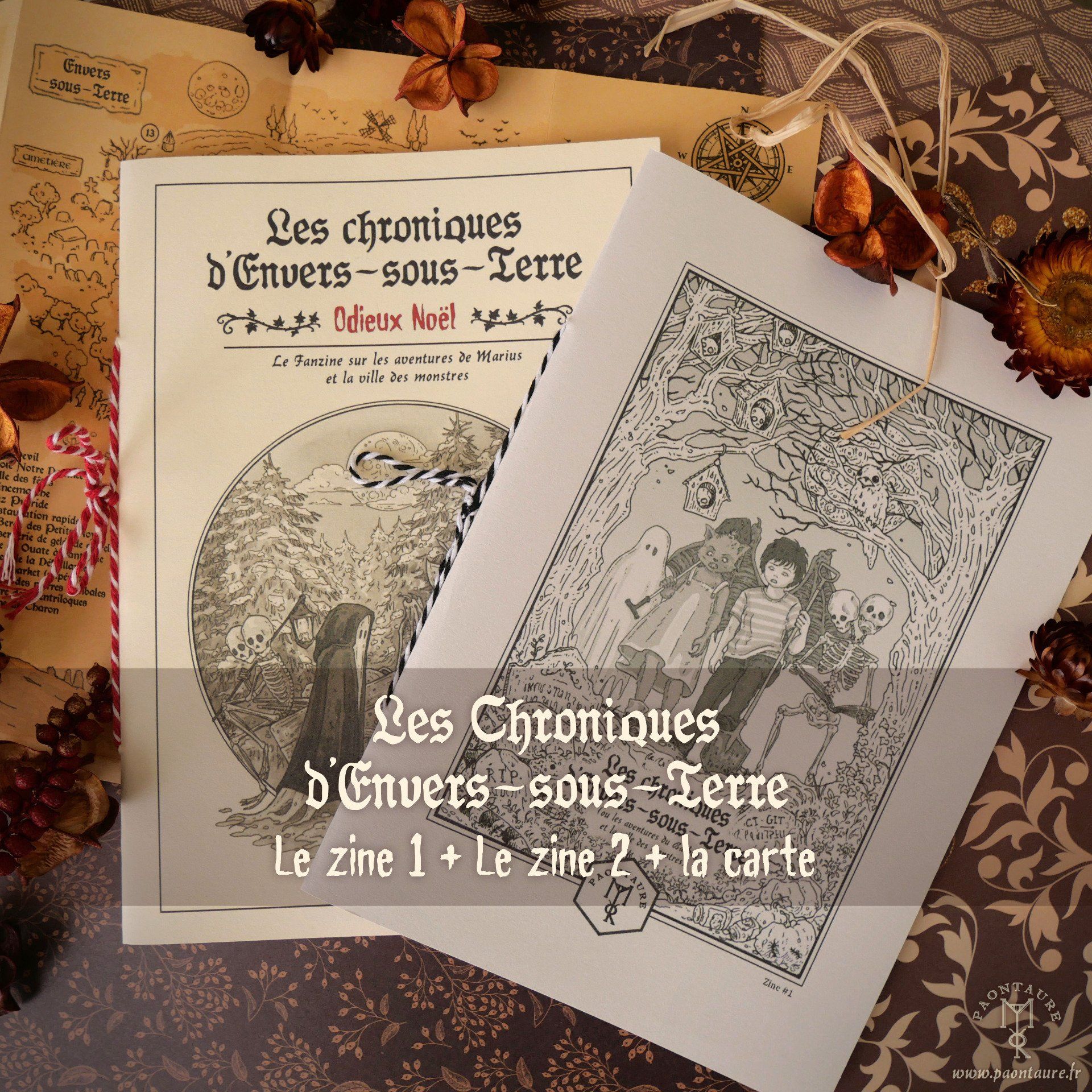 Ce Bundle contient : Le fanzine n°1 "Les Chroniques d'Envers-sous-Terre" avec sa petite carte d'Envers-sous-Terre, et fanzine n°2 "Odieux Noël"
