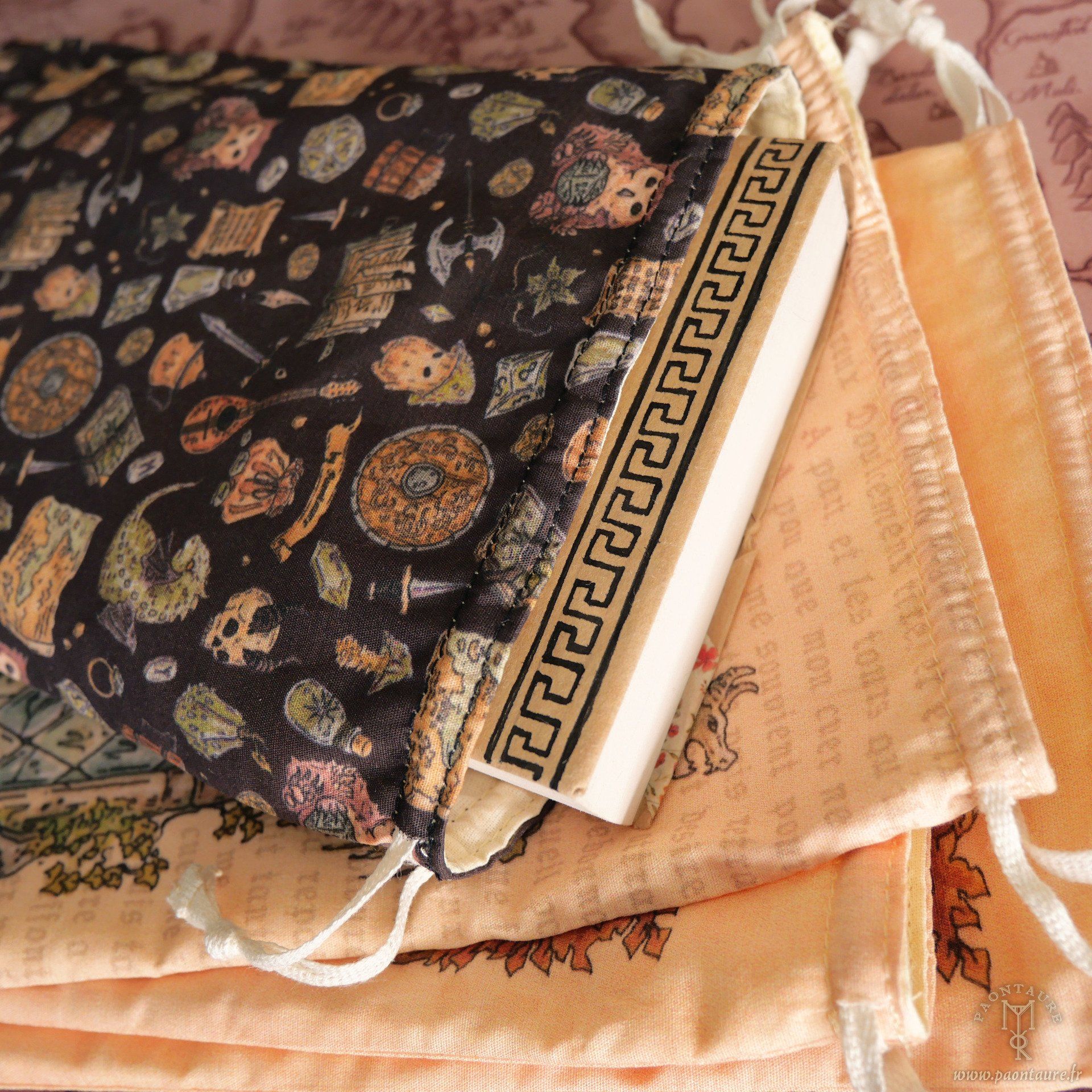 Pochon en coton, imprimé de mes illustrations heroic-fantasy. On peut y ranger divers accessoires tel que des crayons, un jeu de tarot, des accessoires geek, un livre de poche, etc...